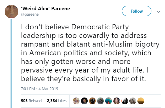 To be clear, while the conservative response to Omar’s comments has been nothing shy of explicitly islamophobic and blatantly hypocritical in nature, Democrats and media liberals alternately tepid-and-condescending or suspiciously eager condemnations should be equally dispiriting.